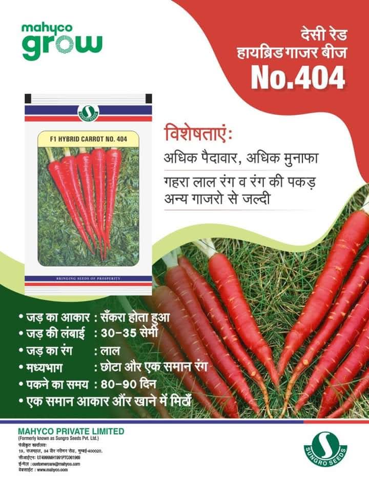 Hybrid Carrot No. 404 Mahyco Sungro Seeds (250Gm)